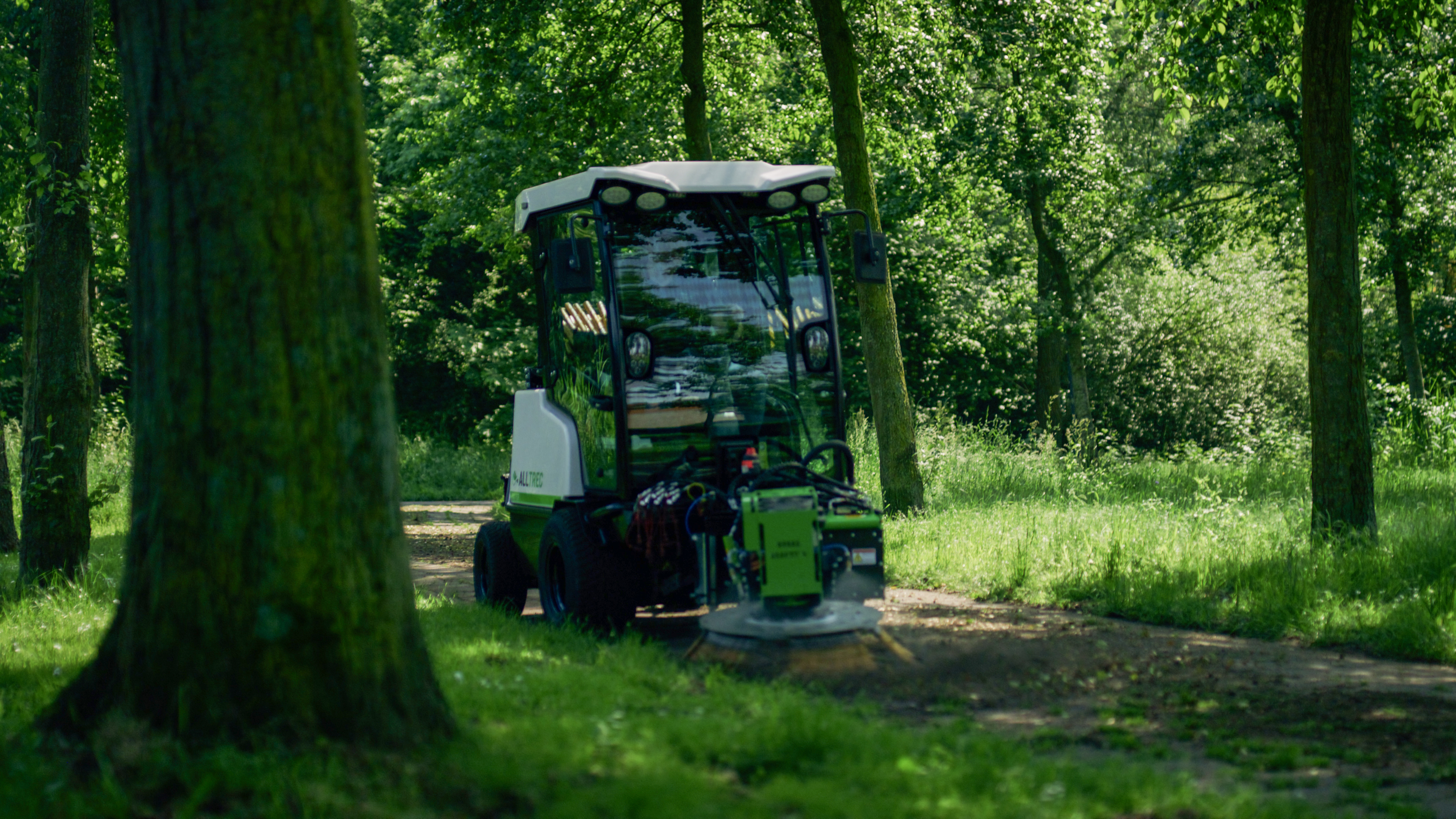 AllTrec 8015F er en fuldt elektrisk redskabsbærer udviklet til professionel pleje af grønne områder – effektiv, støjsvag og helt emissionsfri. Med et kraftigt LiFePO₄-batteri på 50 eller 67 kWh arbejder maskinen driftssikkert hele dagen, og batteriet kan lynoplades på få timer. Maskinen fås med enten 2-hjulstræk eller AWD, og du kan vælge mellem åben ROPS-bøjle eller lukket komfortkabine med aircondition, Bluetooth og sædevarme.