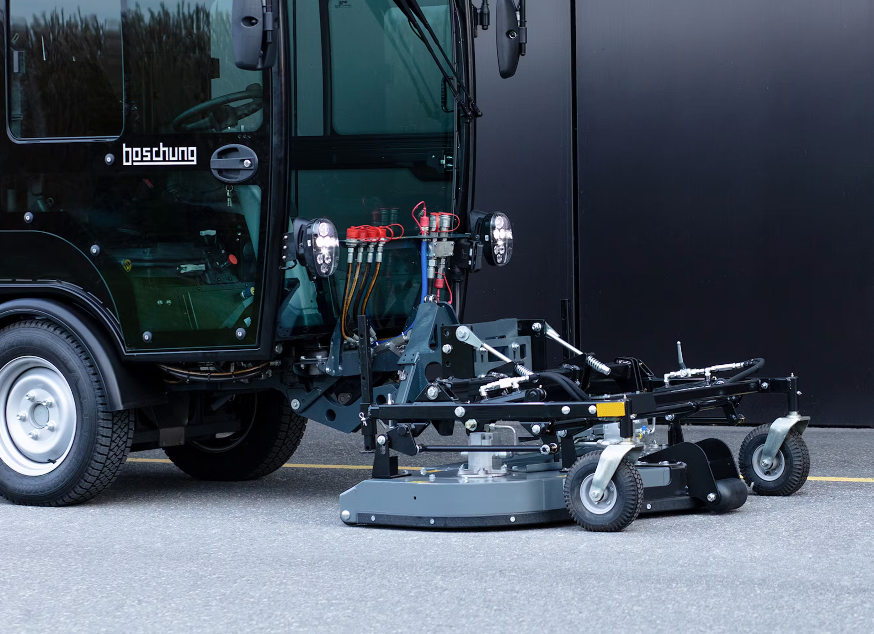 Boschung Pony P 3.0 är en flexibel kompaktmaskin utvecklad för året runt-användning i både stadsmiljöer och mer krävande terräng. Med sin modulära design och ett brett utbud av tillbehör kan maskinen anpassas till en mängd olika uppgifter – från effektiv sopning och snöröjning till saltning, lövuppsamling och vattenrengöring.
